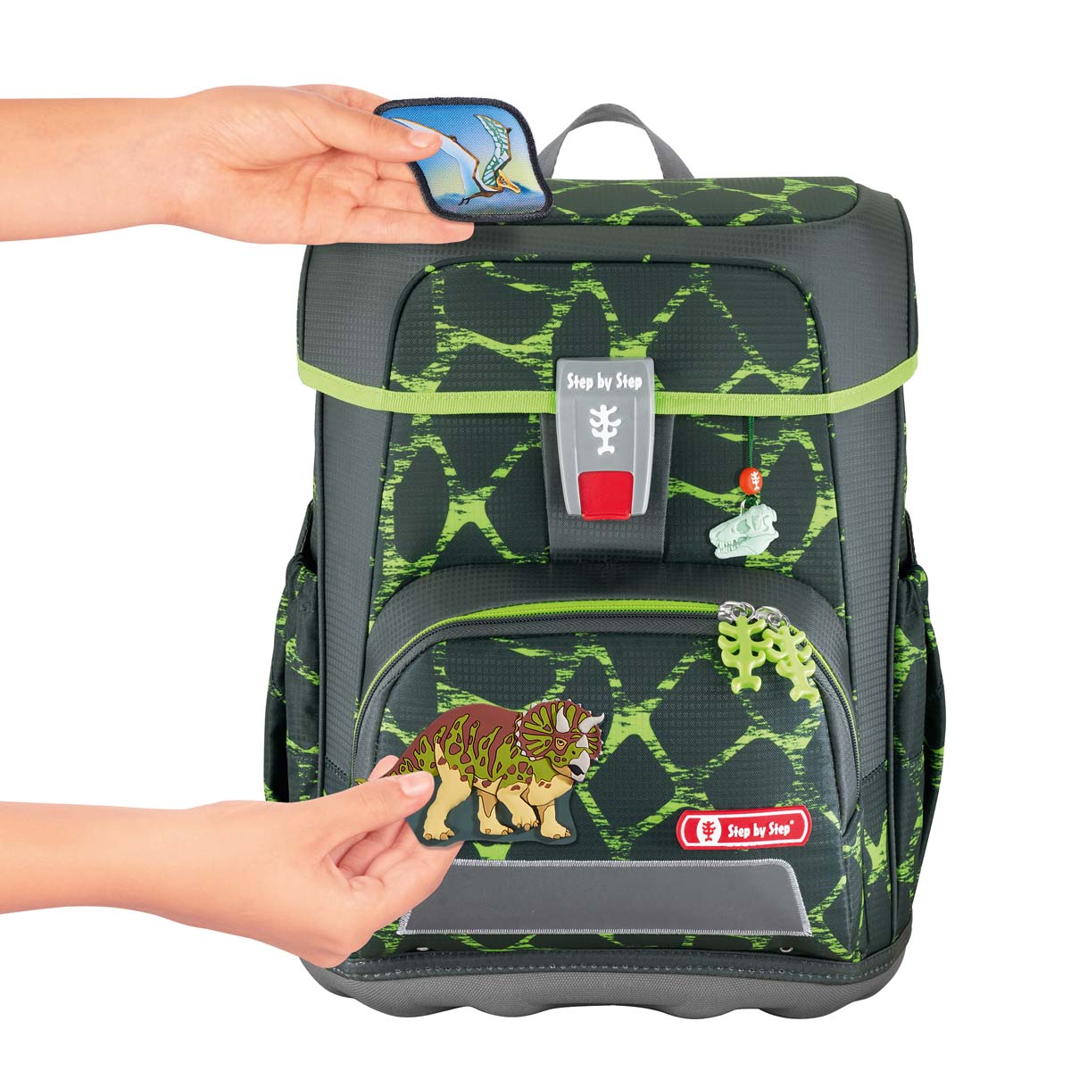- Zubehör-Set zum Wechsel der Applikationen und des Anhängers an allen Schulranzen/Kindergarten-Modellen mit eingebauten Magnetflächen