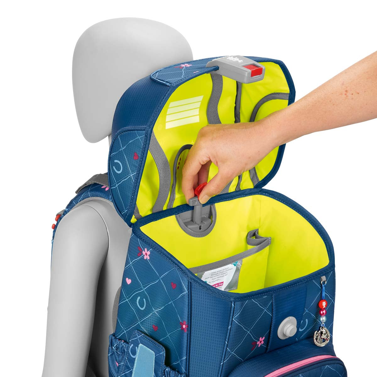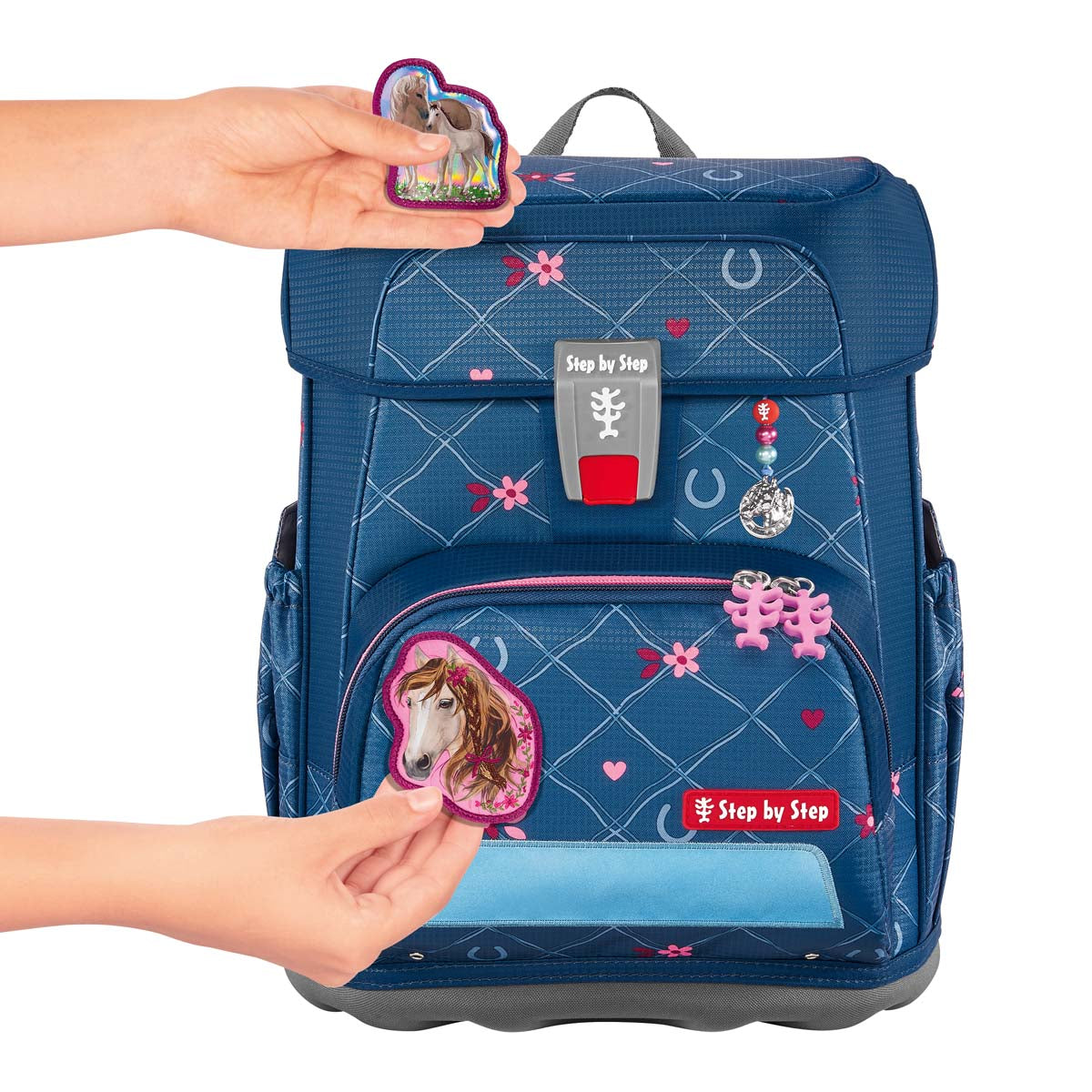 Die Bestandteile des MAGIC MAGS-Zubehörs lassen sich beliebig oft von den entsprechenden Flächen des Schulranzens abnehmen und durch andere MAGIC MAGS ersetzen. Diese sind in 3er-Sets separat erhältlich. Für eine neutrale Gestaltung des Ranzens können die MAGIC MAGS einfach komplett weglassen werden, ohne dass störende Klettflächen entstehen. So wird jeder Schulranzen zum Unikat.