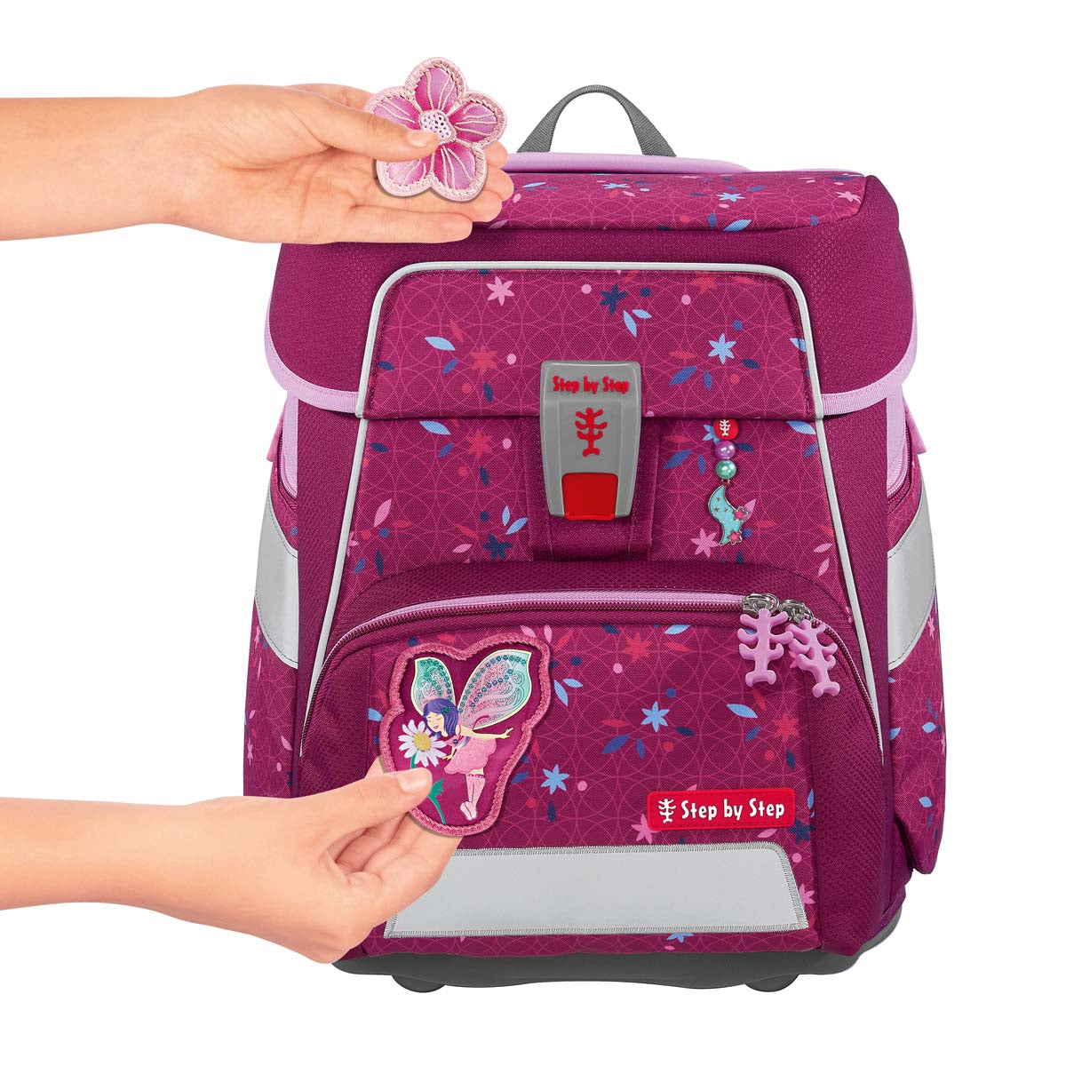 Die Bestandteile des MAGIC MAGS-Zubehörs lassen sich beliebig oft von den entsprechenden Flächen des Schulranzens abnehmen und durch andere MAGIC MAGS ersetzen. Diese sind in 3er-Sets separat erhältlich. Für eine neutrale Gestaltung des Ranzens können die MAGIC MAGS einfach komplett weglassen werden, ohne dass störende Klettflächen entstehen. So wird jeder Schulranzen zum Unikat.